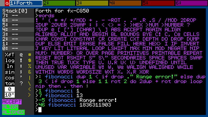 I ran across a post on another forum about N-Queens and C.BASIC which uses the algorithm from this Calculator Benchmark. This algorithm only counts the number of iterations to find the first solution rather finding all solutions like the last algorithm I posted. My version of the new algorithm takes 36ms to do the calculation and 63ms total to do the calculation and print the result. The C.BASIC post doesn't test an FX-CG50 to compare to directly but does list 398ms as the runtime for an FX-9860GII-2 running at 29.5MHz with the integer mode of C.BASIC. Extrapolating benchmark results can be tricky so I'll just say I think my Forth is at least as fast as C.BASIC and maybe a little faster.